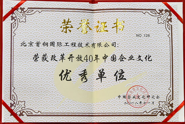 11月17日—19日,由中國企業文化研究會主辦的“回眸改革開放40年開啟企業文化新時代——中外企業文化2018深圳峰會”在深圳召開,包括學者、專家、會員單位代表共600余人參加會議。在這次峰會上,與會專家學者交流了改革開放40年企業文化建設取得的成果,并對企業文建設優秀企業、先進個人等進行了表彰,首鋼國際工程公司榮獲“改革開放40年中國企業文化優秀單位”榮譽稱號。此項榮譽的獲得,是對首鋼國際工程公司多年深耕企業文化建設的充分肯定。公司將以此次獲獎為契機,不斷強化公司企業文化建設,促進企業綜合實力的有效提升。